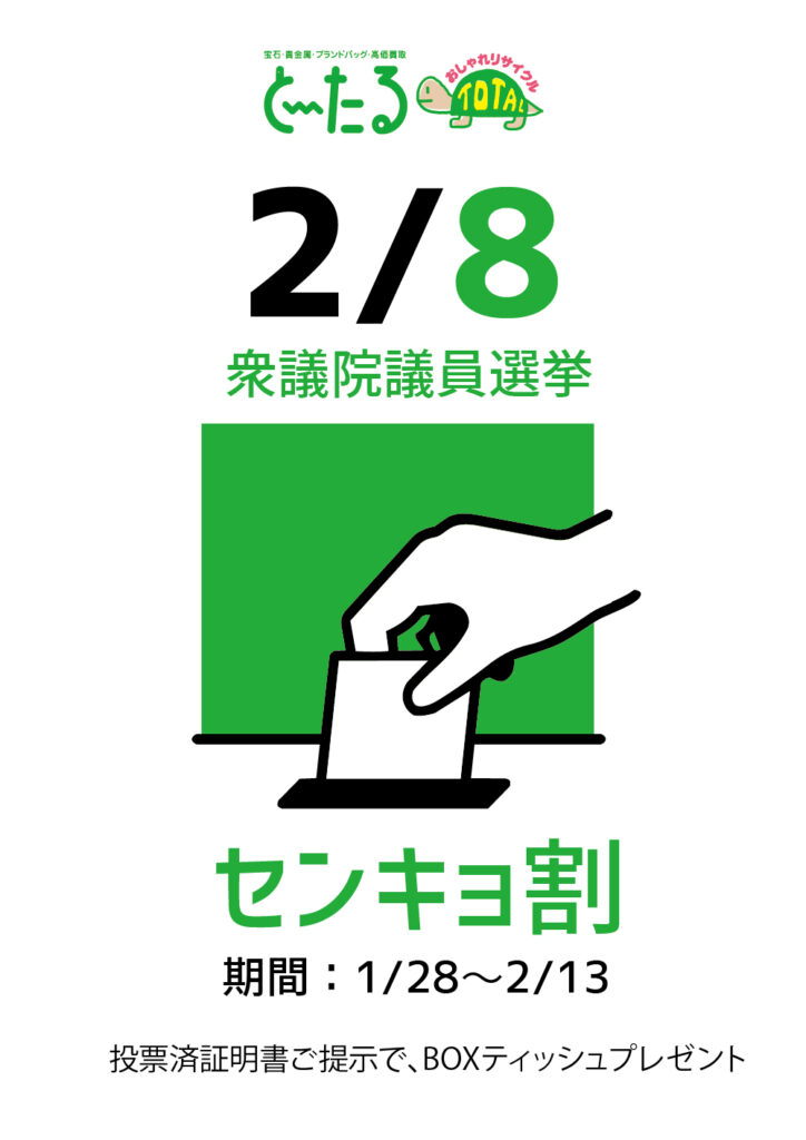 2/8衆議院選挙に合わせて今回も全店舗で参加します!期日前投票を含め、投票済証明書もしくは投票したとわかる画像を店頭スタッフにご提示ください。先着でボックスティッシュを2箱プレゼント致します!